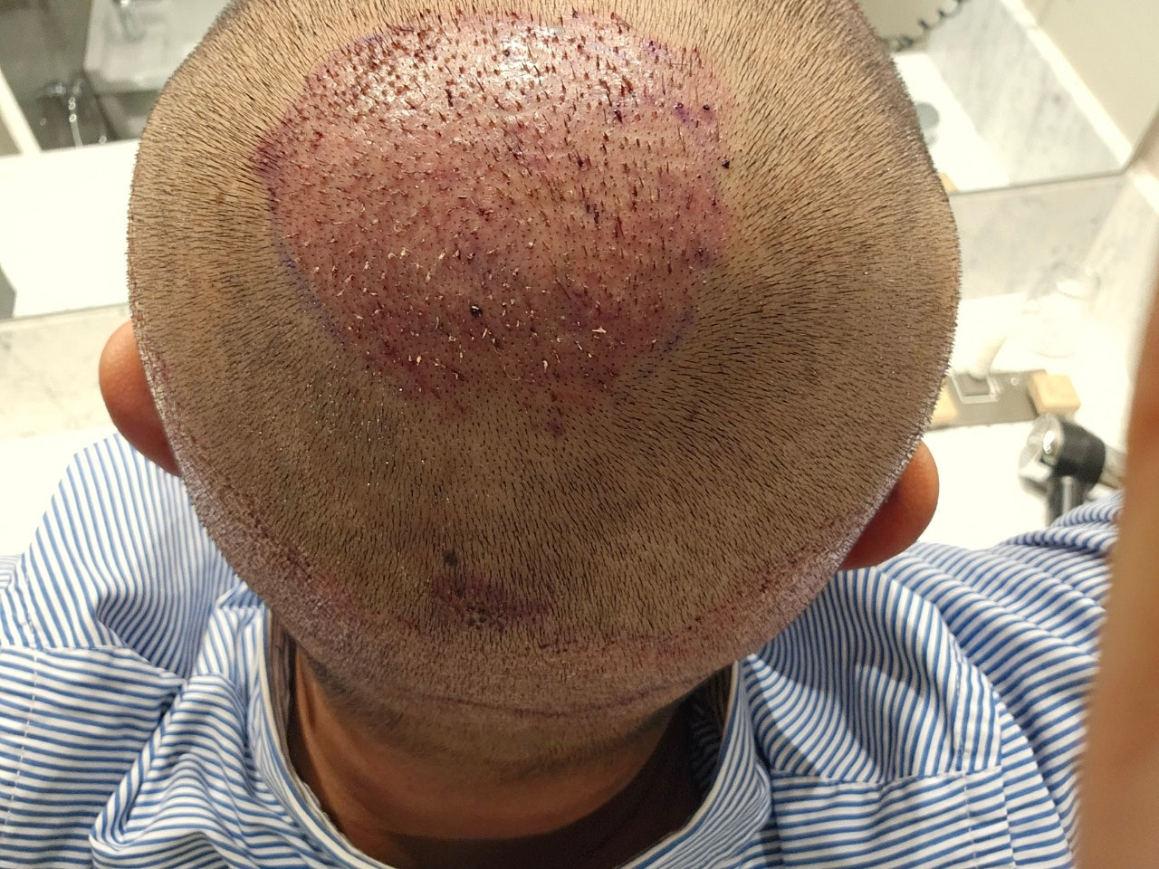 전 앞쪽 M자 탈모와 정수리, 그리고 뒤통수 쪽 땜빵 까지 이식 하는것으로 하고 진행하였습니다.(3000모낭 진행)